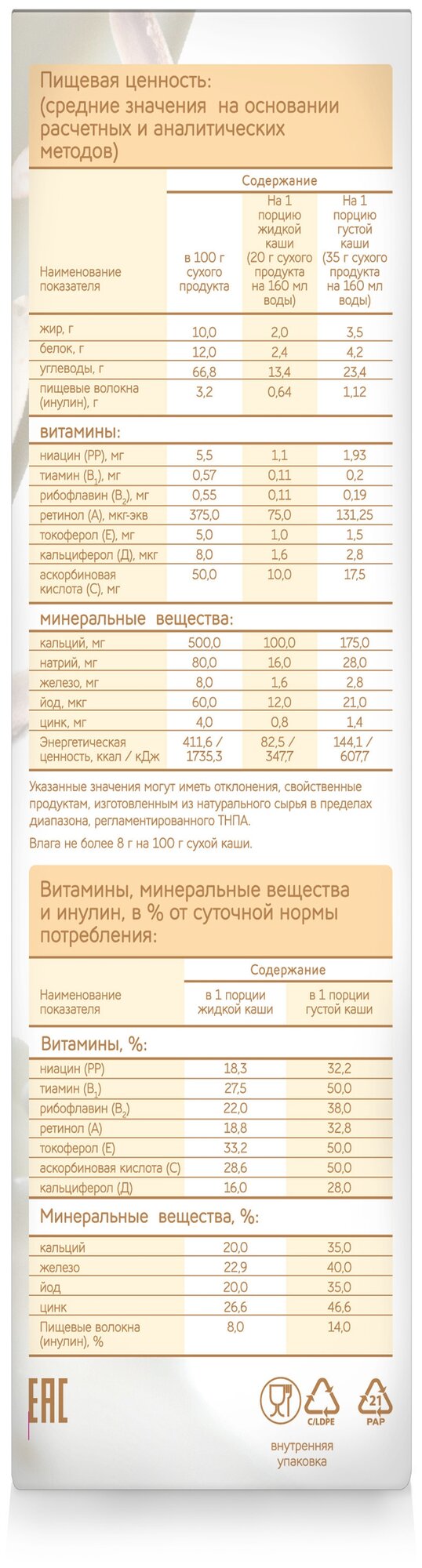 | Содержит | пребиотики |