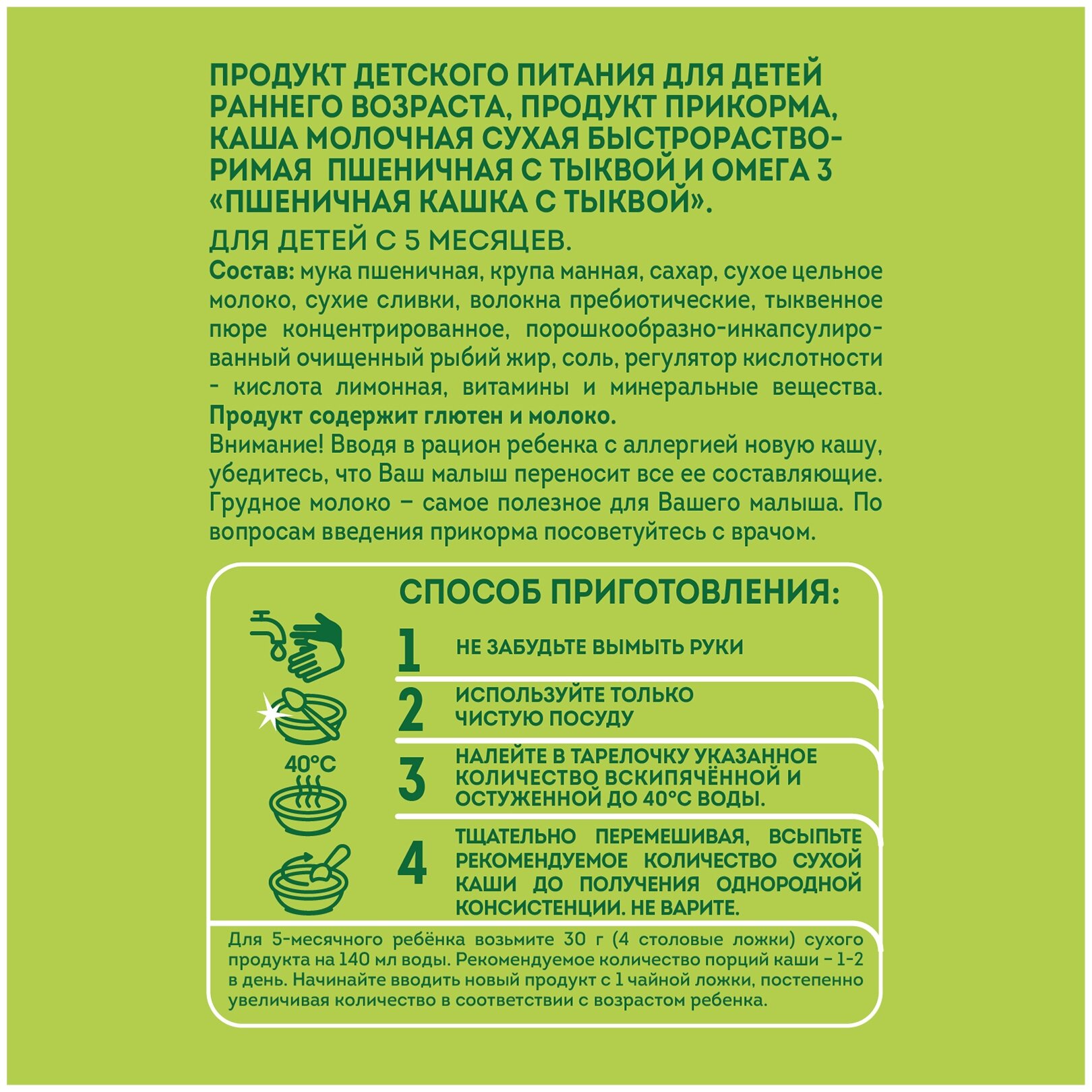Спайка Каша Heinz молочная пшеничная с Омега 3 и тыквой с 5 месяцев 200 г, 2шт информация: