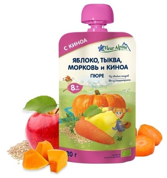 Отзывы на Спайка Пюре детское Fleur Alpine яблоко, тыква, морковь и киноа, с 8 месяцев, 120 г, 6 штук