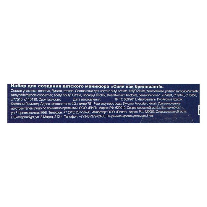 Маникюрный набор для девочки "Сияй как бриллиант!" (Микс наклеек) информация: