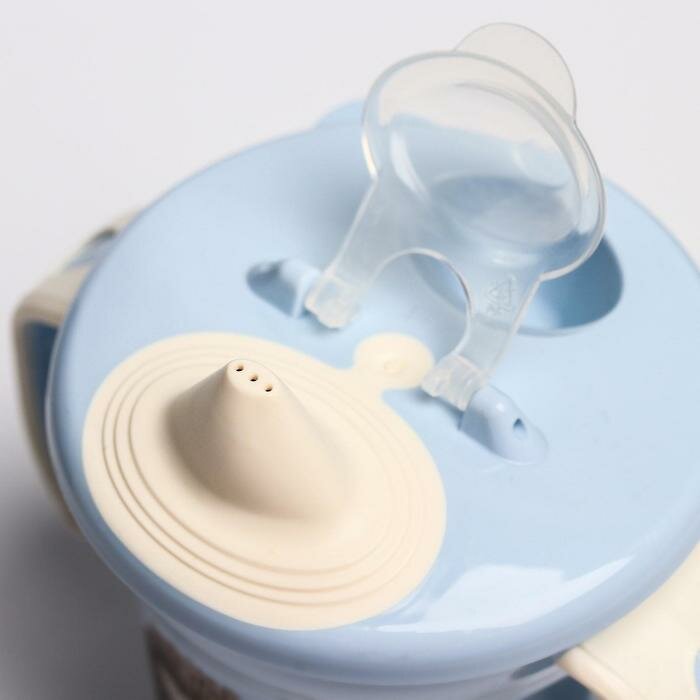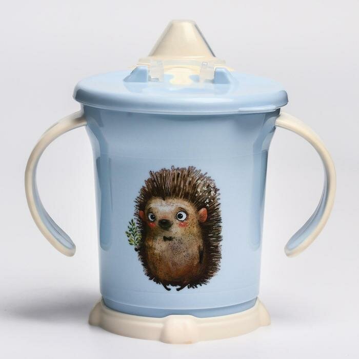 Поильник с ручками, декором и защитной крышкой, 320 мл, цвет: светло-голубой, на блист. 12,4x12,6x8,