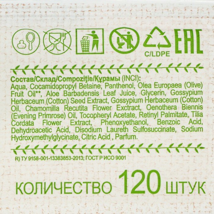 Влажные салфетки, Солнце и Луна, ECO детские 0+ , хлопковые, нежное алоэ и Д-пантенол, 63 шт, 3 уп