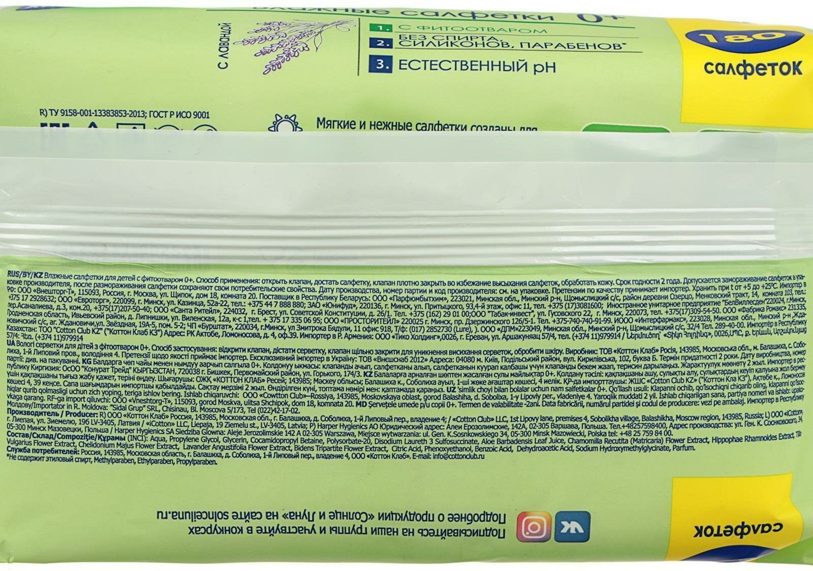 Влажные салфетки детские 0+ "солнце И луна" с отваром лаванды, 180 шт. информация: