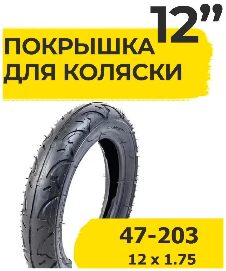 Покрышка 12 дюймов 12х1.75 ( 47-203 ) Wandersmann (807) для коляски детской детского велосипеда информация: