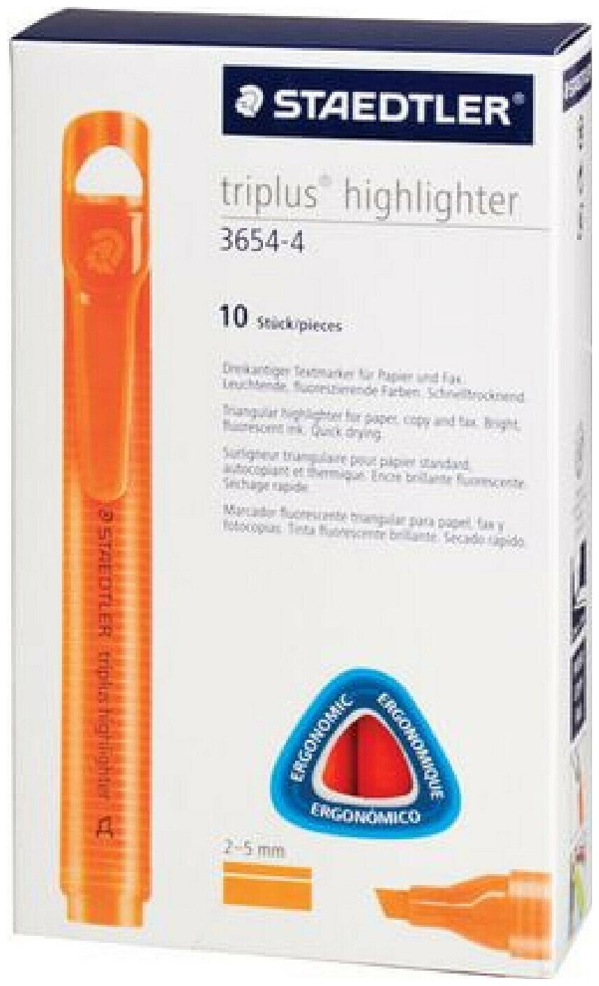 10 цен на Текстовыделитель STAEDTLER (Германия) "Triplus", неон оранжевый, трехгранный, линия 2-5 мм, 3654-4