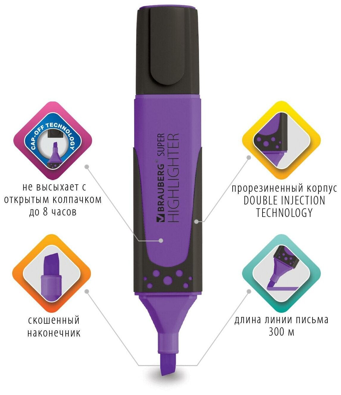 Текстовыделитель BRAUBERG "SUPER", фиолетовый, прорезиненный корпус, линия 1-5 мм, 151743 информация: