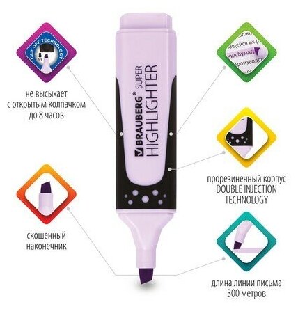 Текстовыделитель BRAUBERG "SUPER PASTEL", лавандовый, прорезиненный корпус, линия 1-5 мм, 151751 151751 информация: