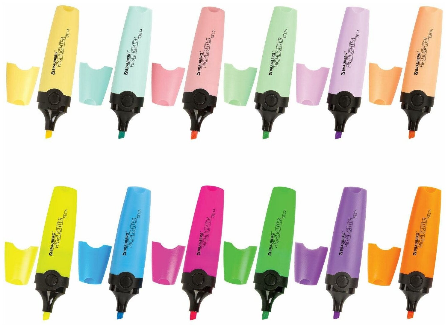 Маркер-текстовыделитель (для выделения текста) Brauberg "Delta", набор из 12 штук, ассорти цветов, линия 1-5 мм информация: