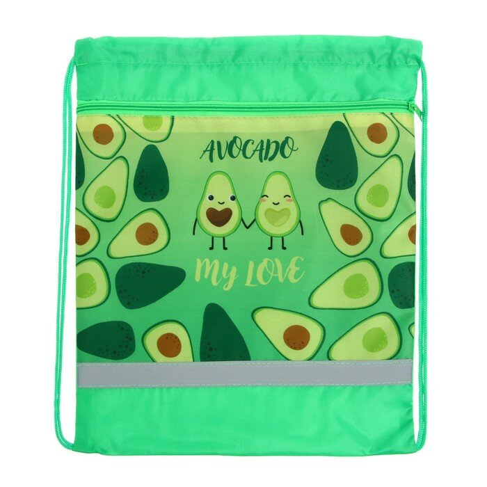 Мешок для обуви с карманом 420 х 340 мм, со светоотражающей полосой, "Авокадо лав" информация: