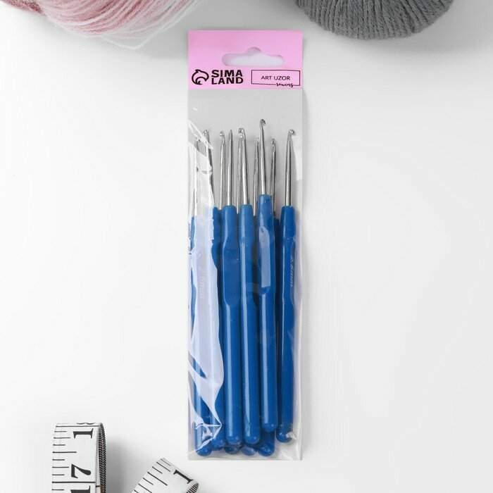 10 цен на Крючок для вязания, с пластиковой ручкой, d = 2,5 мм, 13,5 см, цвет синий