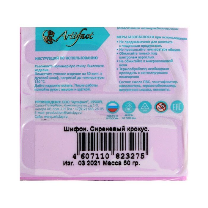 Пластика - полимерная глина 50 г шифон Сиреневый крокус информация: