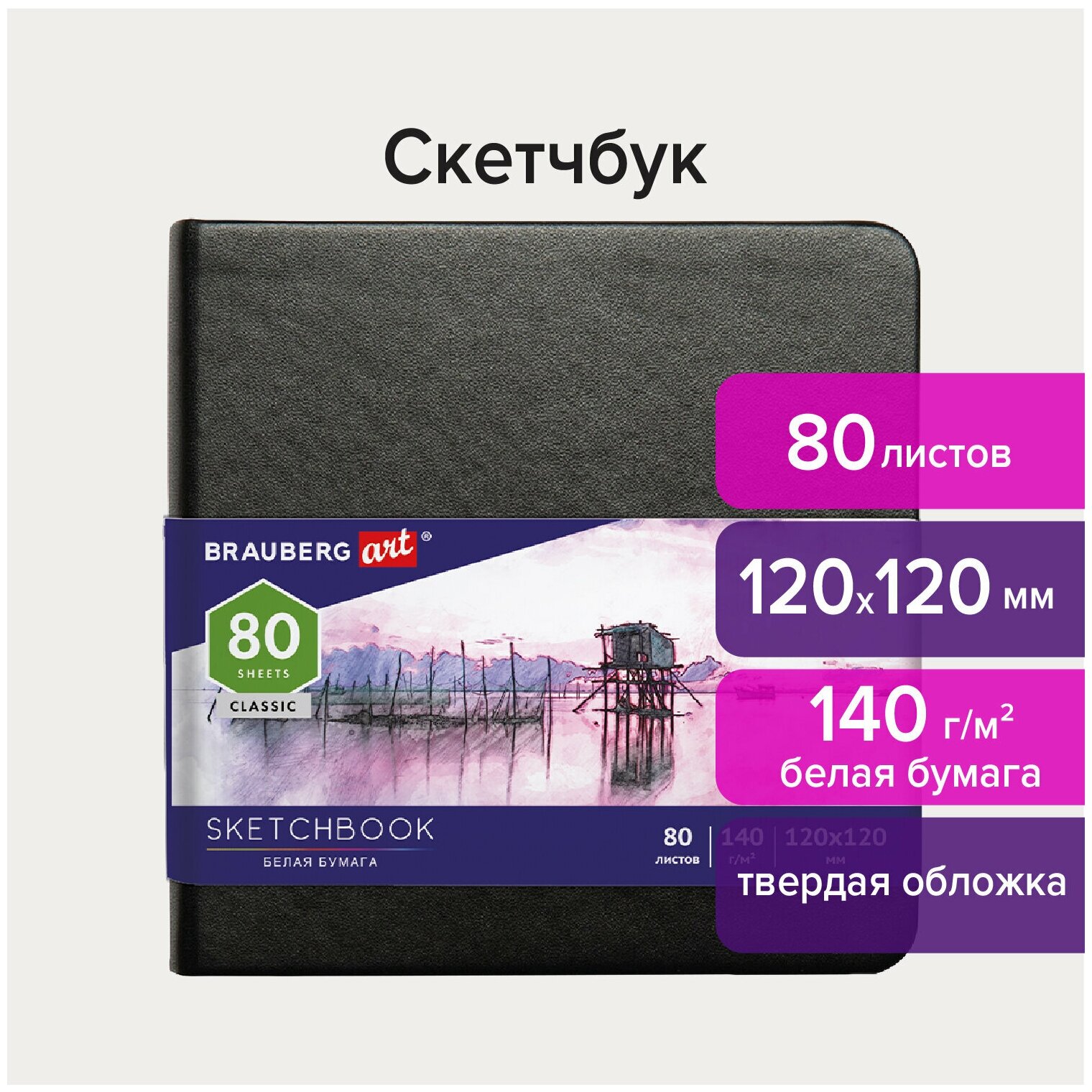Скетчбук BRAUBERG ART Classic 12 х 12 см, 140 г/м², 80 л.