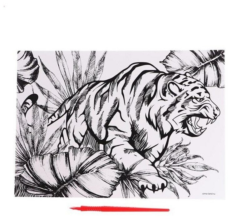 Отзывы на Гравюра "Тигр в джунглях" A4, с металлическим серебряным эффектом 6939008