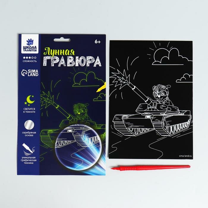 Лунная гравюра «Собачка на танке» 14.8х21 см информация: