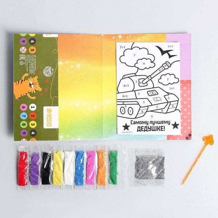 Комплект 46 шт, Аппликация из песка и блесток ТРИ совы "Змейка", с раскраской, пакет с европодвесом