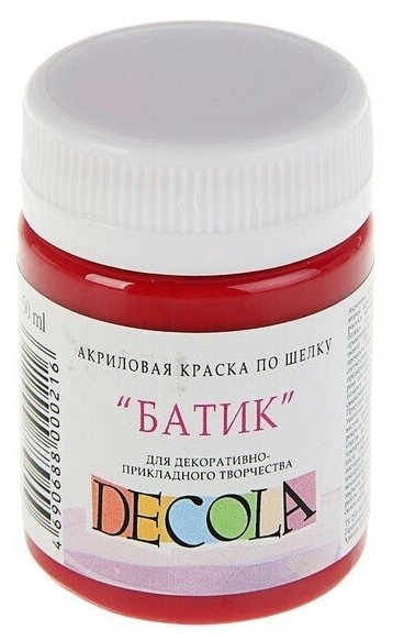 Краска по шелку "Батик", банка 50 мл, ЗХК Decola, Карминовая 4428319 (акриловая на водной основе)