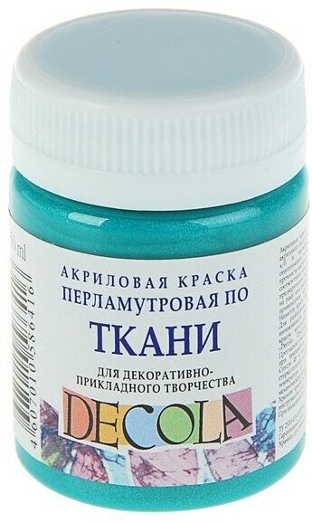Краска по ткани, банка 50 мл, Decola, Pearl перламутровая Бирюзовая (акриловая на водной основе) информация: