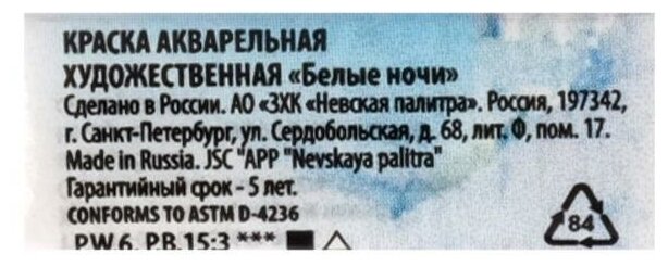 Завод художественных красок «Невская палитра» Акварель художественная "Белые ночи", 2.5 мл, лазурная мгла, в кювете