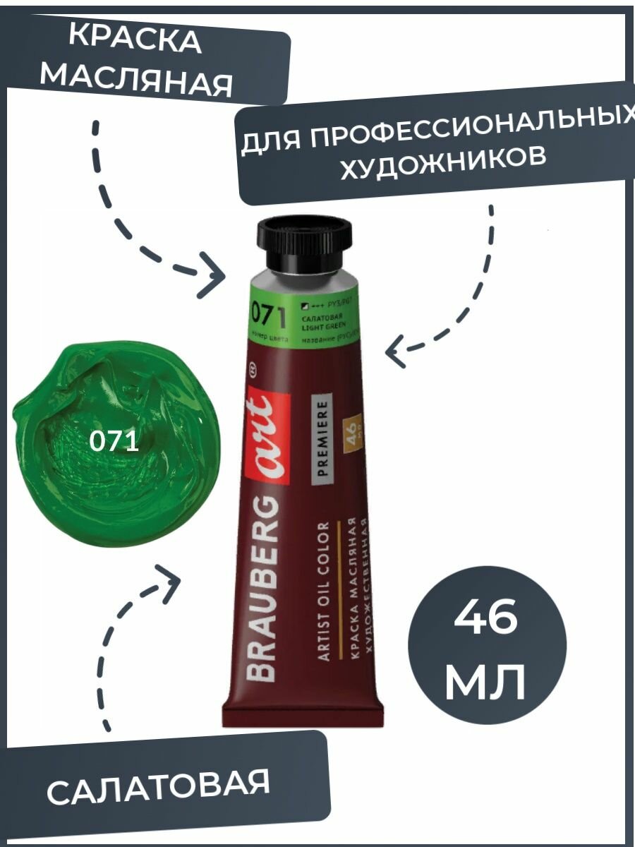 Краска масляная художественная Brauberg ART PREMIERE, 46 мл, проф. серия, салатовая, 191425 информация:
