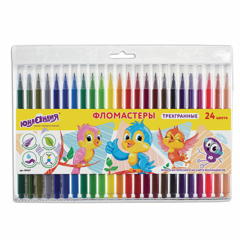 10 цен на Фломастеры юнландия 24 цвета, комплект 5 шт., "зоопарк", трехгранные, вентилируемый колпачок, 151427