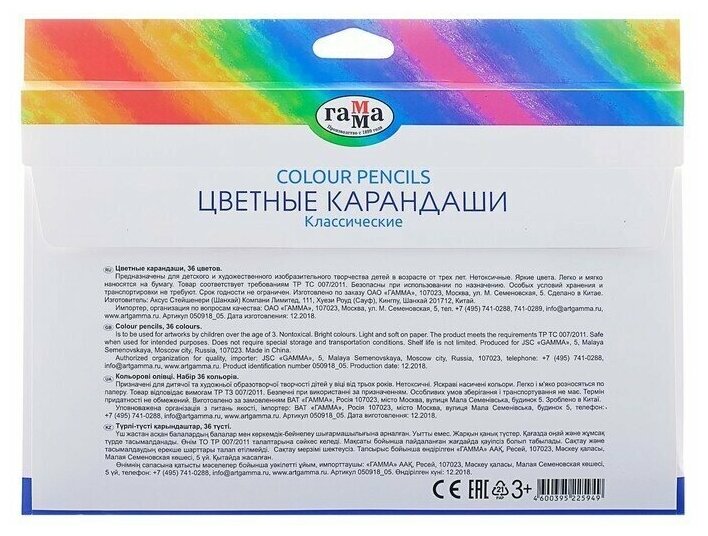 Гамма Карандаши 36 цветов «Гамма» «Классические», стержень d=2.6 мм, шестигранные информация: