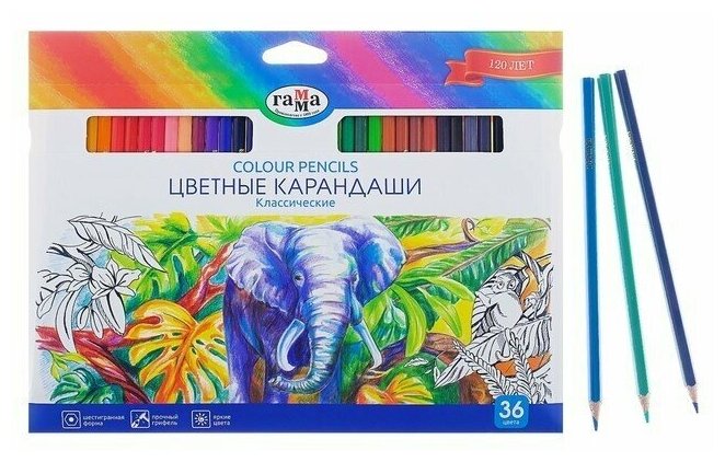 Карандаши 36 цветов Гамма Классические, стержень d=2.6 мм, шестигранные 4284407 информация: