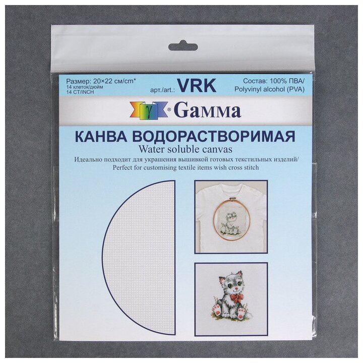 Канва для вышивания Gamma водорастворимая, 100% пва, 20х22 см, 3 шт, прозрачная (VRK) информация: