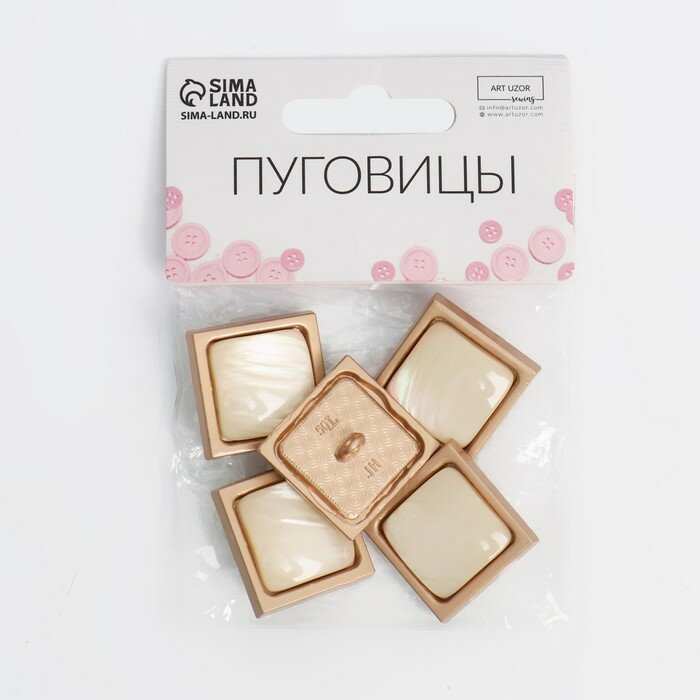 Набор металлических пуговиц на ножке, 20 x 20 мм, 5 шт, цвет золотой/песочный./В упаковке шт: 1 информация: