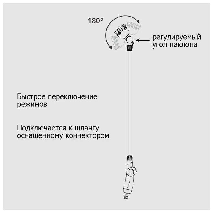 Душ поливочный прямой удлиненный с вращающейся головкой 9-ти функц под кон 'Урожайная сотка Эксперт' прорез (YM6307) информация: