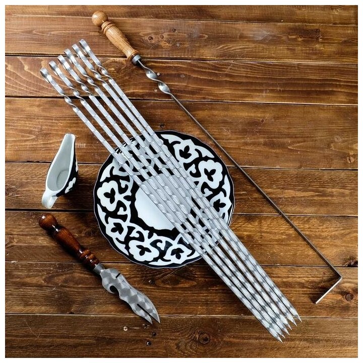 Шафран Набор узбекских шампуров 60см, + аксессуары "Пахта" 10 предм