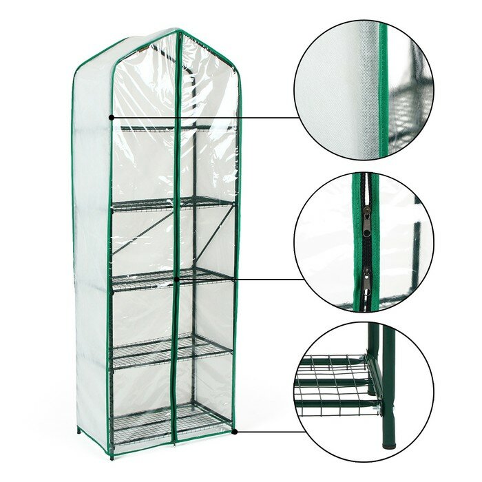 Весна Парник-стеллаж, 5 полок, 190 ? 65 ? 40 см, металлический каркас d = 16 мм, чехол спанбонд 60 г/м?, дверь из плёнки 100 мкм информация: