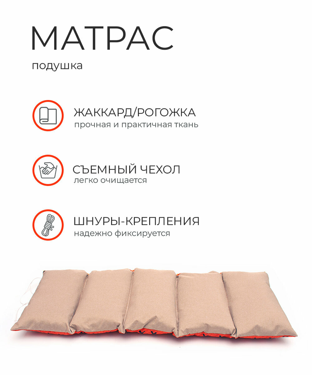 Матрас для шезлонга WOWPUFF подушка водоотталкивающая 190х60х3.5 см, до 100 кг