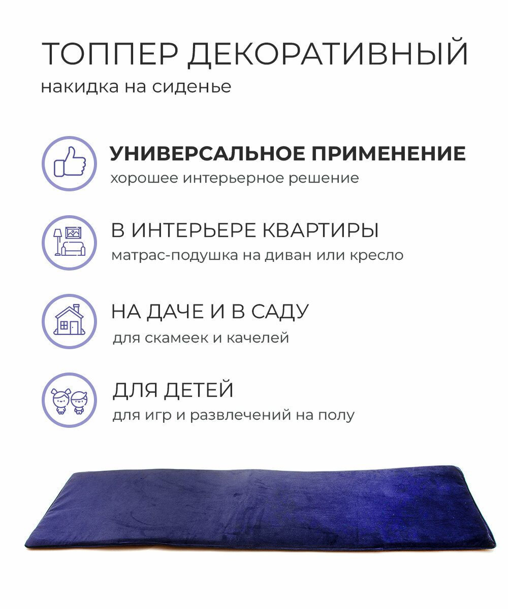 Отзывы на Накидка покрывало матрас-топпер подушка на качели сиденье шезлонг скамейку садовую мебель 190*60*3 поролон велюр WOWPUFF кобальт