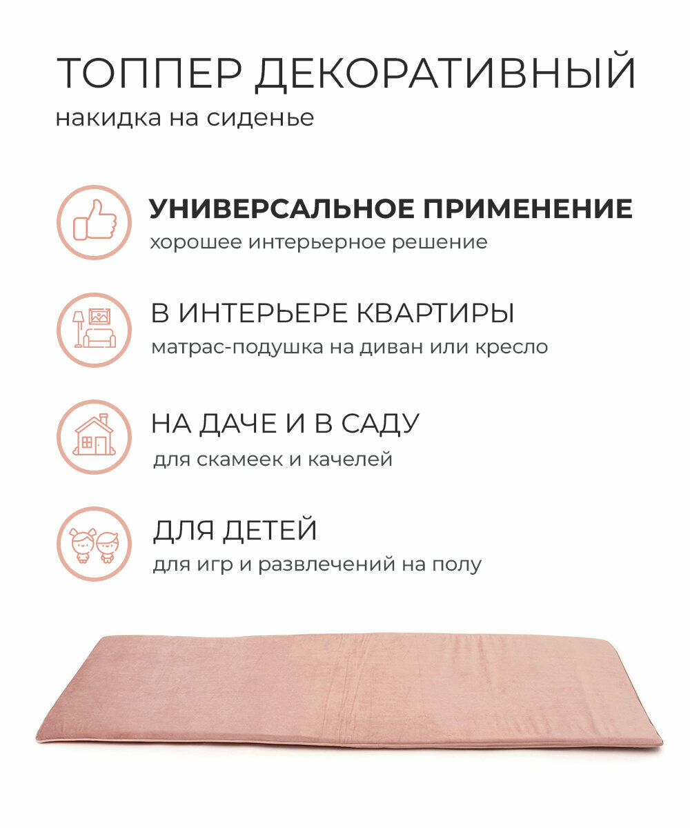 Накидка покрывало матрас-топпер подушка на качели сиденье шезлонг скамейку садовую мебель 190*60*3 поролон велюр WOWPUFF розовый информация: