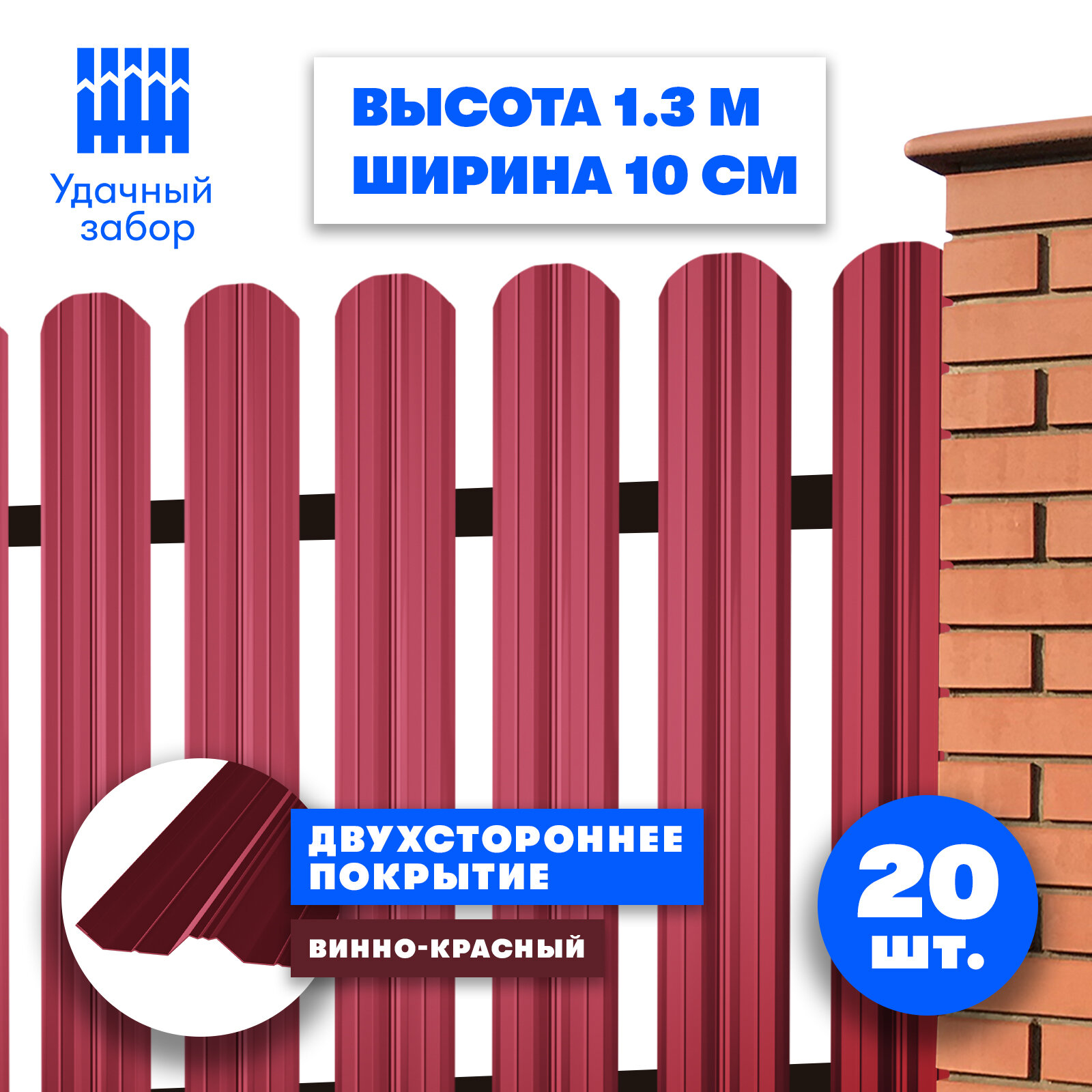 10 цен на Штакетник металлический Классик (двусторонний окрас, цвет винно-красный, высота 1.3 м, ширина планки 100 мм, 20 шт., саморезы в комплекте)
