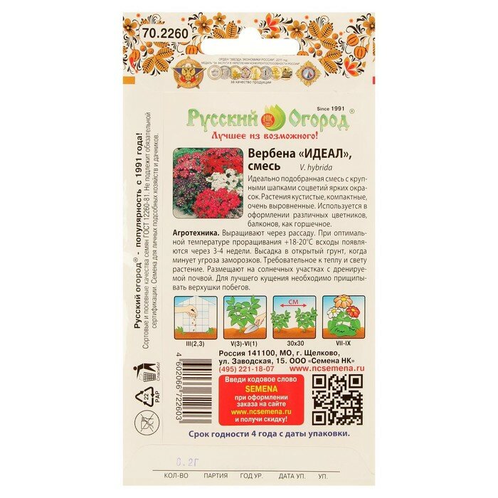 Отзывы на Семена цветов Вербена "Идеал", серия Русский огород, смесь, О, 0,2 г