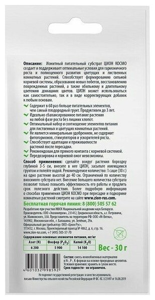 Цион Космо для комнатных, ионитный питательный субстрат 30г информация: