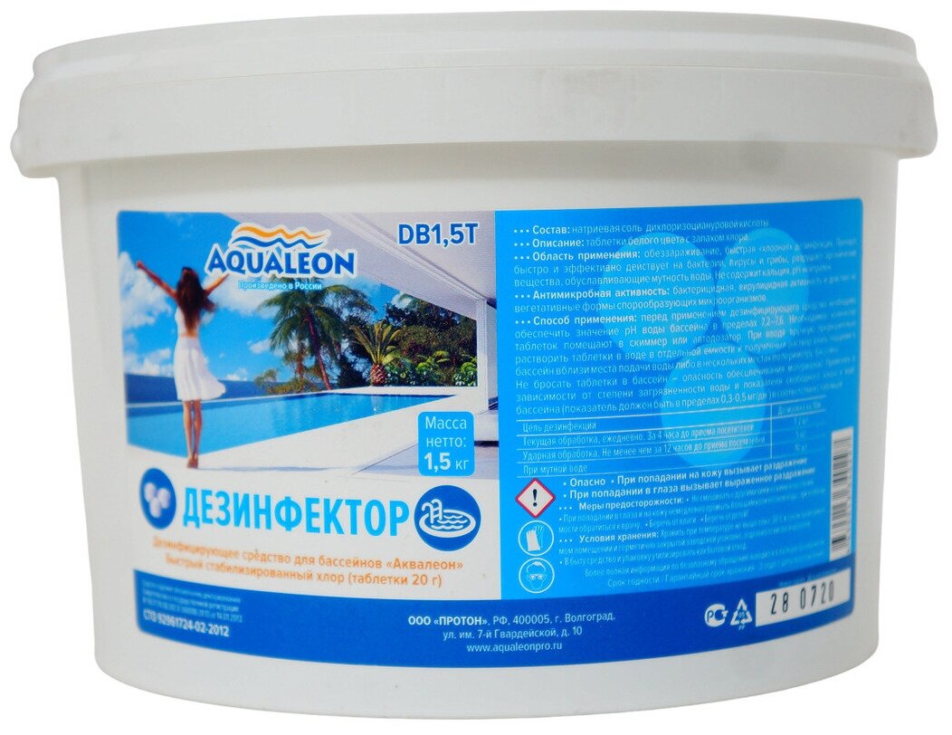 Быстрый стабилизированный хлор Aqualeon таб. 20 гр., 1,5 кг./ В упаковке: 1