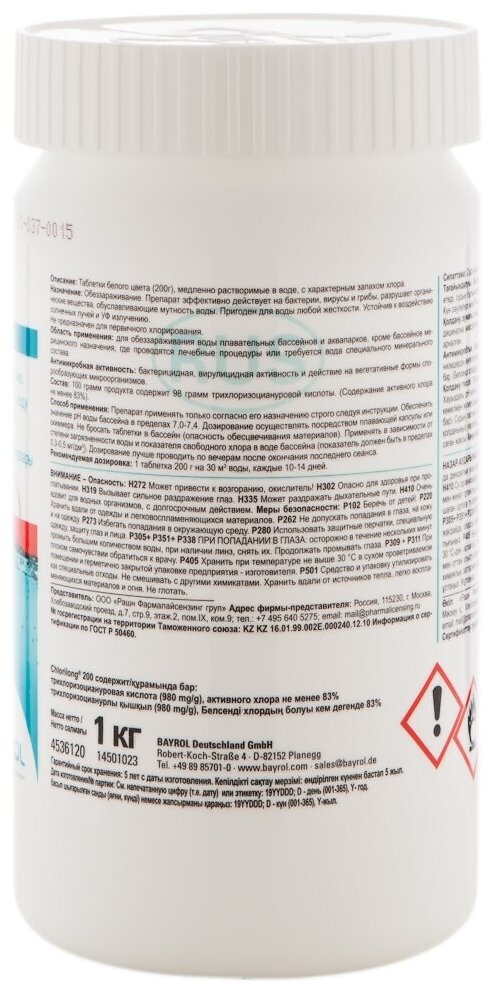 Медленнорастворимый хлор Bayrol ChloriLong 200 4536120 1 кг . информация: