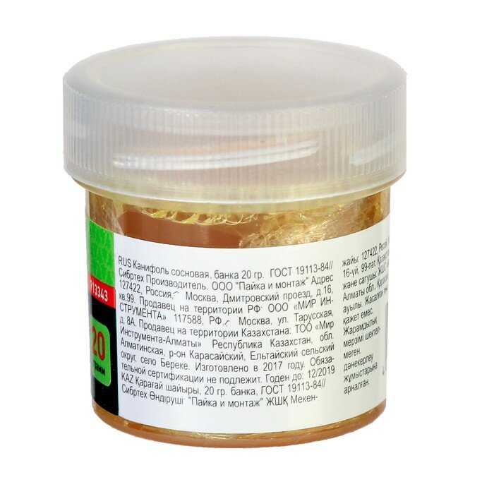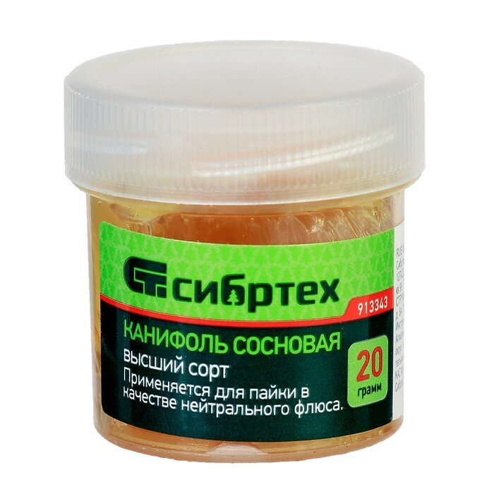 10 цен на Канифоль сосновая "Сибртех", банка 20 г, ГОСТ 19113-84./В упаковке шт: 10