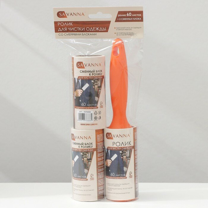 10 цен на SAVANNA Ролик для чистки одежды SAVANNA 60 листов + 2 сменных блока по 60 листов