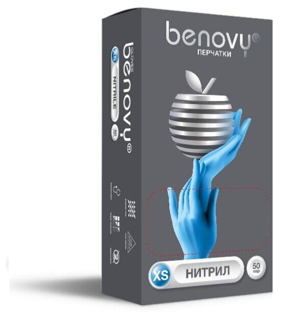 Мед.смотров. перчатки нитрил., нестер., н/о,голубой Benovy (XS), 50 пар/уп информация: