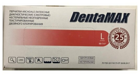 Перчатки смотровые латексные DentaMAX, размер L, 100 шт. (50 пар), двойного хлорирования информация: