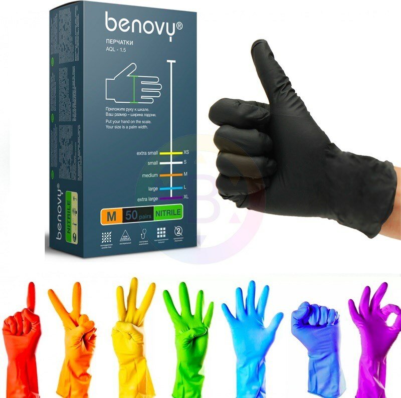 Benovy черные нитриловые перчатки (100шт) размер М 487 ₽