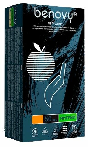 Benovy Перчатки Benovy (L) латексные нестерильные текстурированные, 50 пар/уп