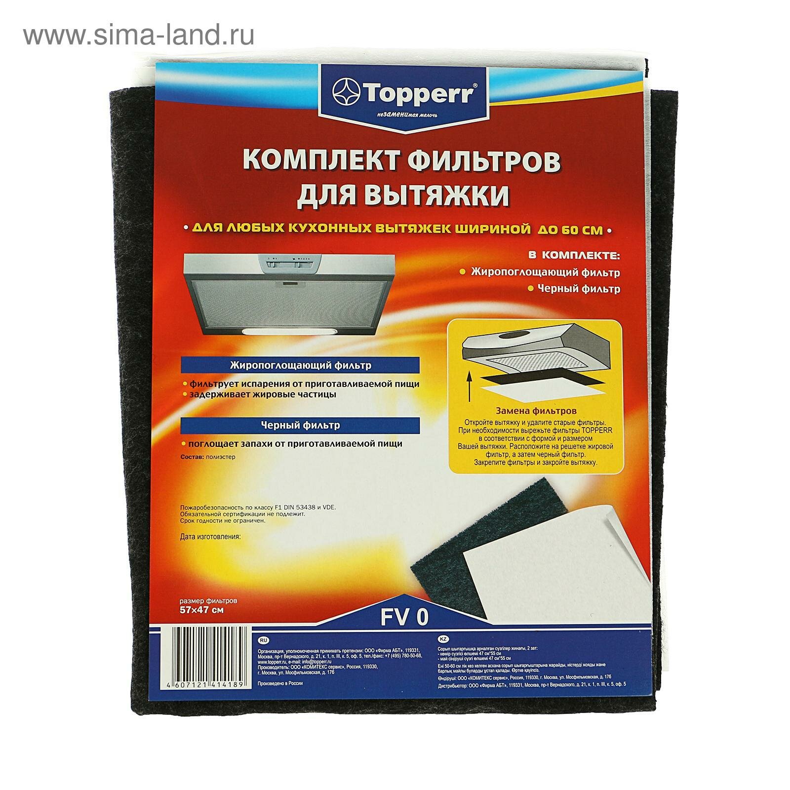 Topperr Комплект фильтров Тopperr для вытяжки, черный, жиропоглощающий информация: