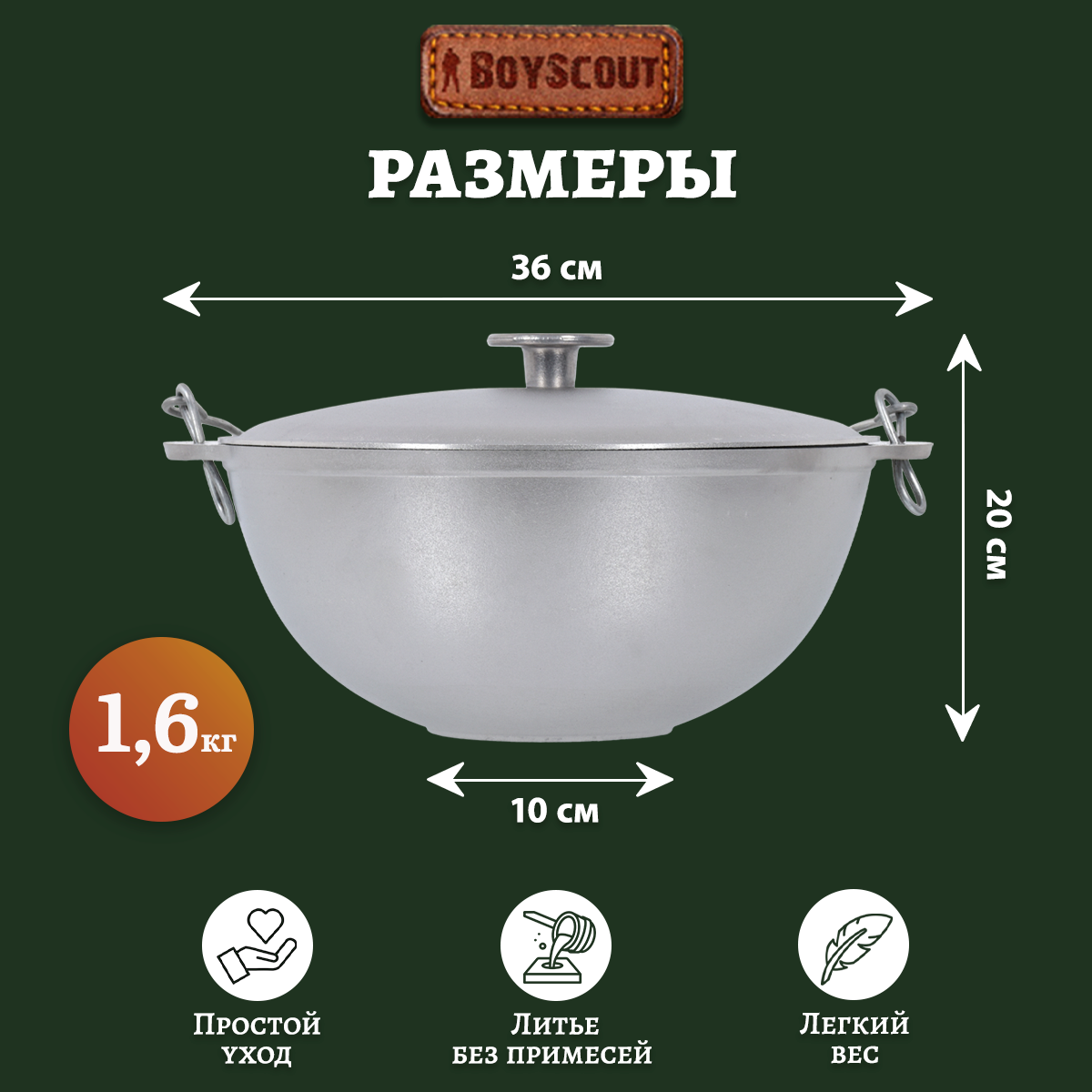 Казан алюминиевый BOYSCOUT литой с крышкой 8 л, азиатская чаша