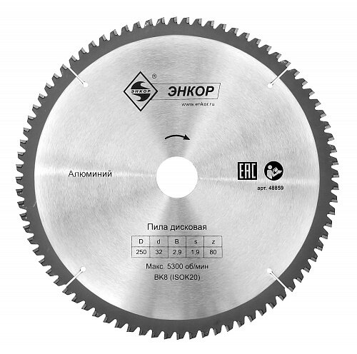 Диск пильный 250x32x80z Энкор по алюминию информация: