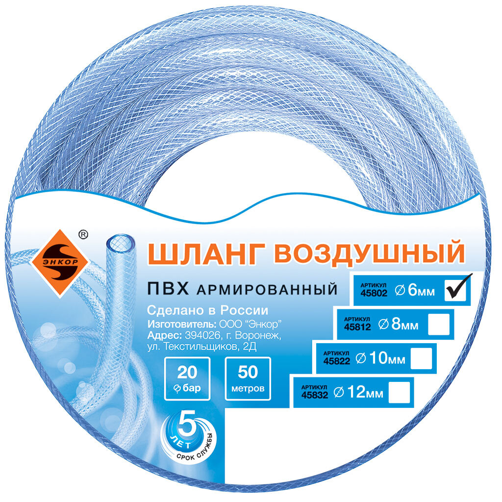Шланг для воздуха Энкор ПВХ (20бар) ф 6мм х 50м информация: