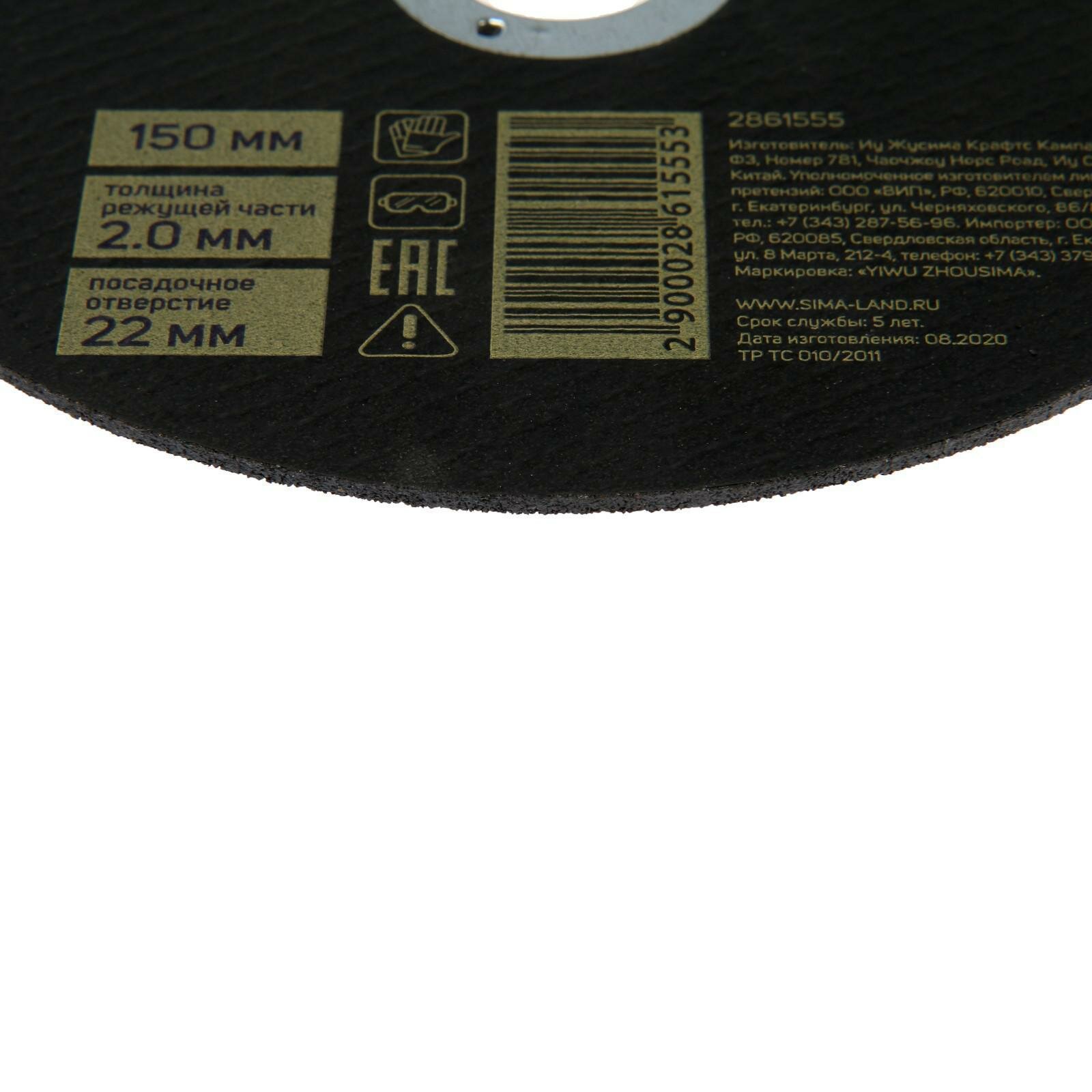Круг отрезной по металлу армированный, 150 x 2.0 x 22 мм информация: